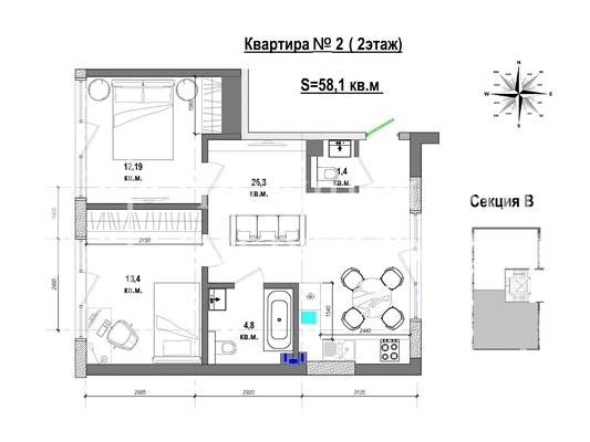 | 1 кімнатні | від 42 до 57 м2 |