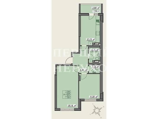 | 2 кімнатні | від 59 до 63 м2 |