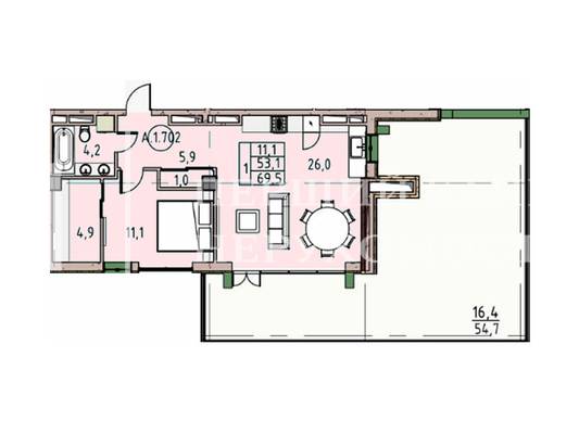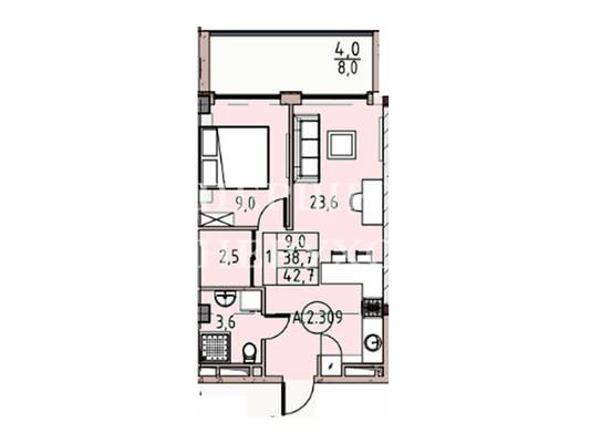 | 1 кімнатні | від 38 до 56 м2 |