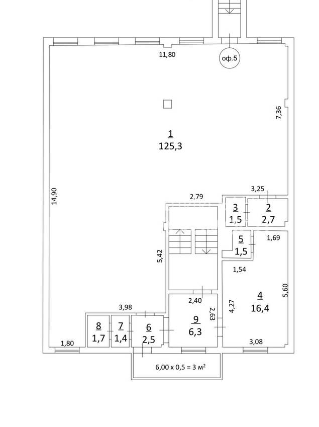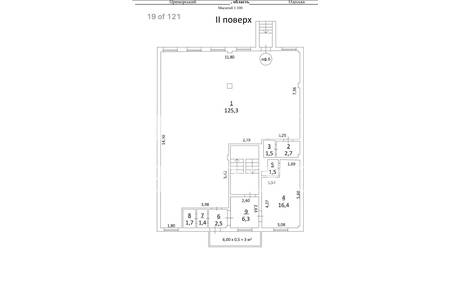 Основне приміщення площею 125,3 м2 та кілька підсобних приміщень.