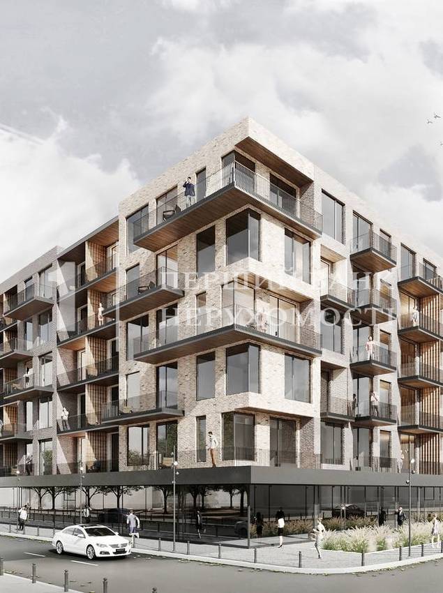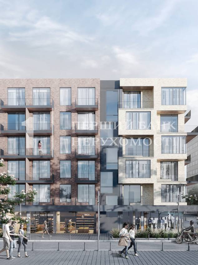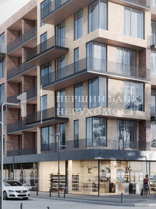 Це монументальна, малоповерхова будівля з панорамними вікнами у футуристичному архітектурному стилі. Внутрішня частина будинку представлена атріумом, вкритим скляним дахом. Там спроектовано місця для відпочинку з озелененням. Власний підземний паркінг вирішить питання щодо зберігання автомобіля, а комерційні приміщення на першому поверсі будуть корисні в рамках розвитку інфраструктури району.