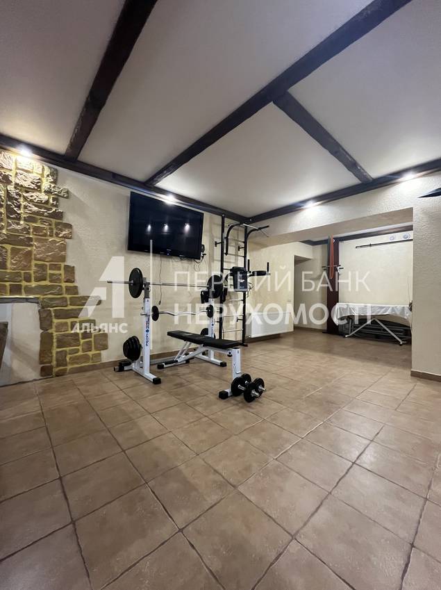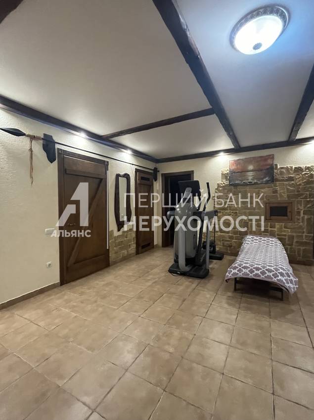 У будинку розташовані 3 спальні, 3 з/в, 2 гардеробні кімнати, кабінет (можна використовувати як гостьову спальню), велика кухня-студія, велика зимова тераса з барбекю, літня ігрова, літня спальня з видом на басейн заглиблений підвал з повним життєзабезпеченням. У підвалі повністю укомплектований тренажерний зал, авторська лазня (хаммам, сауна). Для зручності є окремий вихід у двір до басейну