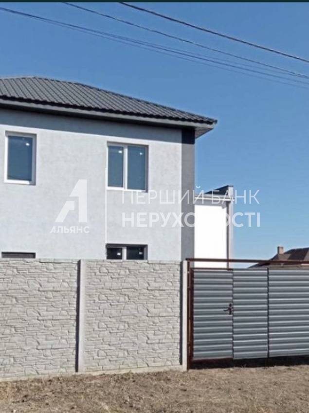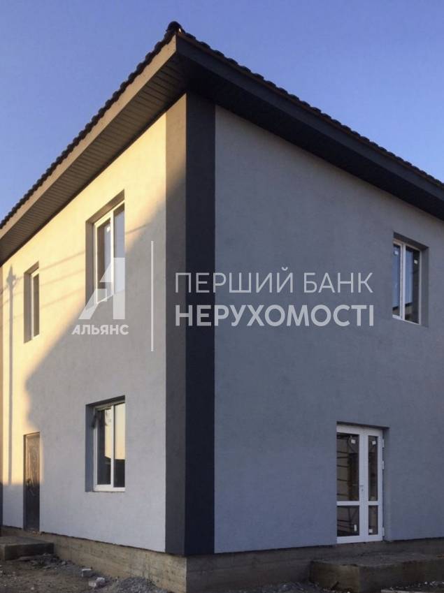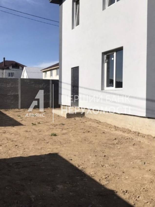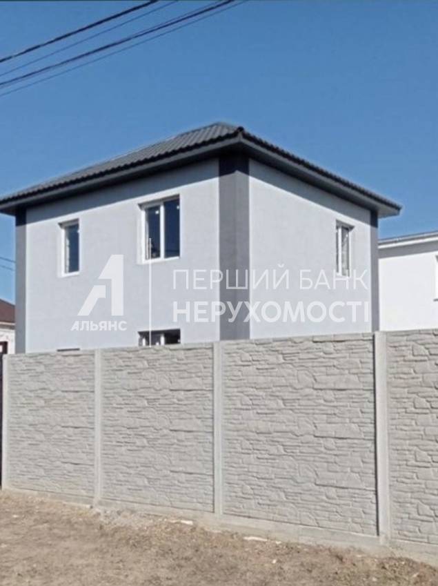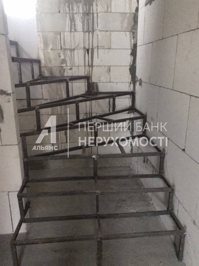 Стіни-газобетон 40 см + утеплювач. Перекриття між поверхами бетонні плити. На підлозі стяжка. Встановлено каркас сходів. Зроблено скління. Проведено світло 5 кВт, вода на ділянці. Встановлено вигрібну яму. Паркан по всьому периметру + ворота. Площа ділянки 2.75 сотки (18*15) Площа будинку 90 м2 Площа кухні-студії 24 м2 з додатковим виходом у зону барбекю На першому поверсі розміщена кухня - студія, санвузол та підсобне приміщення під сходами На другому поверсі дві спальні, гардеробна кімнату), санвузол.