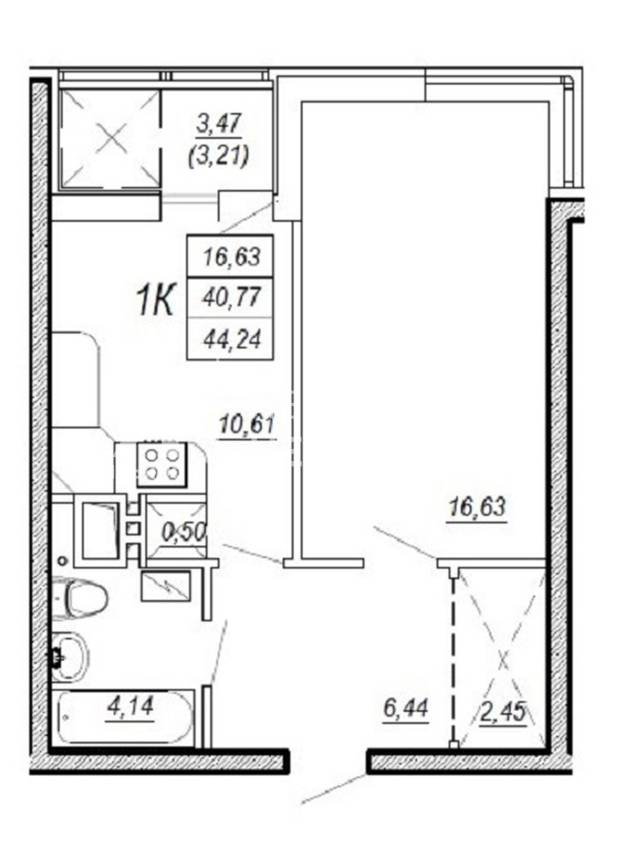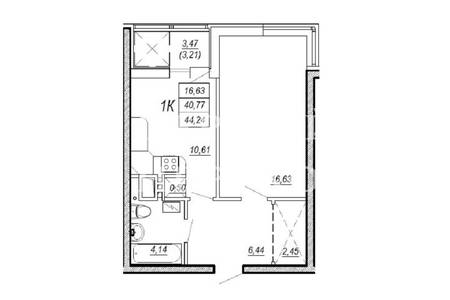 | Жила/Кухня, кв.м. | 16.63/10.60 | ||