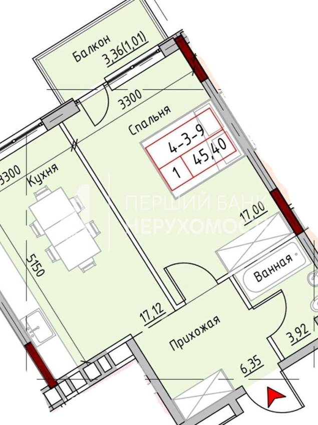 | Висота стелі, м. | 3.00 | ||