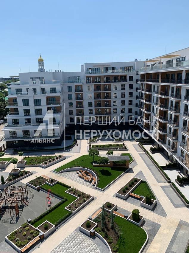 Простора 1-кімн. квартира у малоповерховому будинку бізнес-класу на березі моря! Велика кухня правильного планування та спальня (17м2) з виходом на балкон. Закрита територія, що охороняється, двір без машин і власний парк з багаторічних блакитних ялинок, які прикрашають прибудинкову територію.
