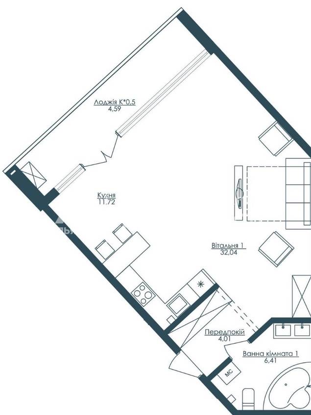| Загальна, кв.м. | 54.00 | ||