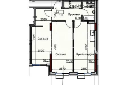 Квартира площею 72 кв м, у стані від будівельної компанії, кухня-20,1 кв м, дві кімнати-20,3 та 18,4 кв м. Панорамні вікна. Квартира дуже тепла та світла. Розташована на 3 поверсі 7 поверхового будинку.
