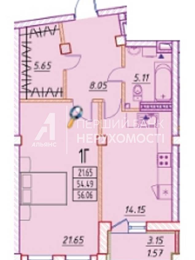 Площа: 56,06 м.кв. Стан від будівельників.