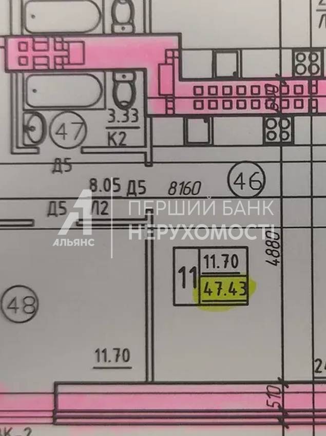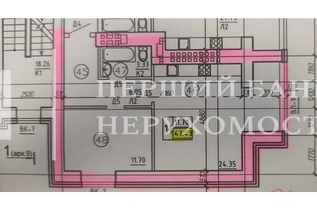 У продажу однокімнатна квартира 47,5 м2 з двоконтурним газовим котлом (АГВ) в будинку з цегли (підготовка до здачі). Вікна виходять у тихе та спокійне подвір'я з видом на центральну частину міста. Квартира правильного планування двостороння, прямокутна широка передпокій 8м, великою кухнею-студією 24,3м та спальнею 11,7м, санвузол суміщений 4,7м.