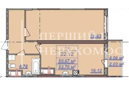 | Загальна, кв.м. | 52.70 | ||