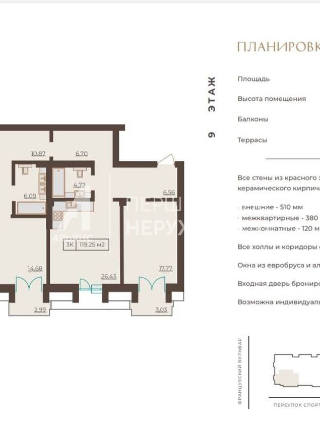 У продажу 3 кімнатна квартира в будинку преміум класу з червоної цеглини на Французькому бульварі від будівельної компанії Зарс (Дома Каркашадзе).