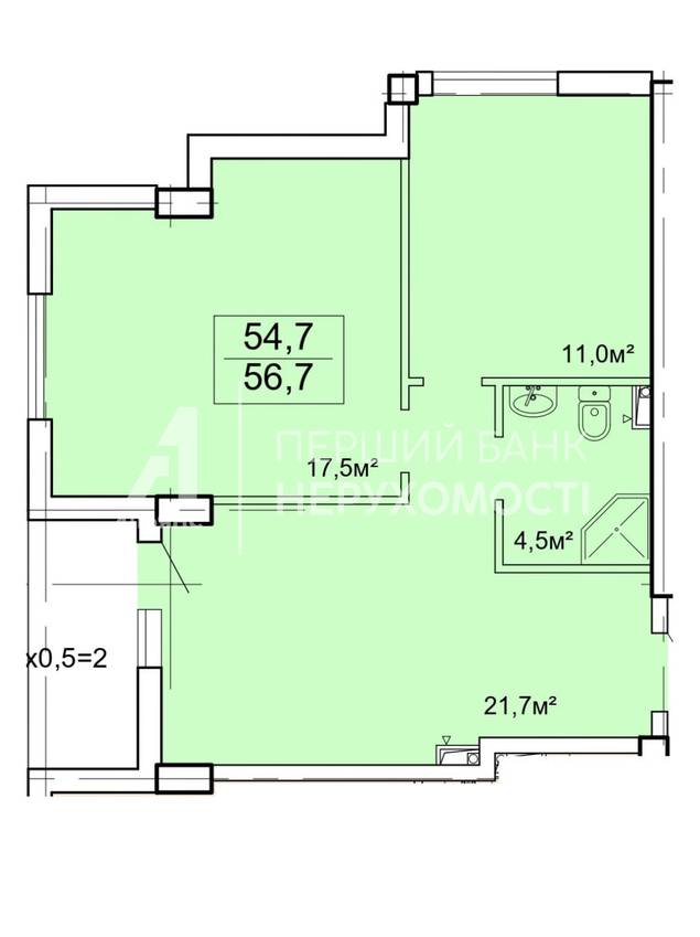 Загальна площа 56,7 м2;