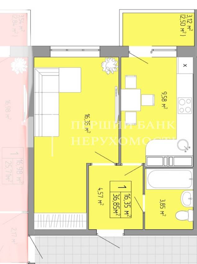 • Загальна площа: 38 м²
