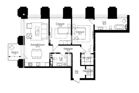 | Жила/Кухня, кв.м. | 29.40/27.60 | ||