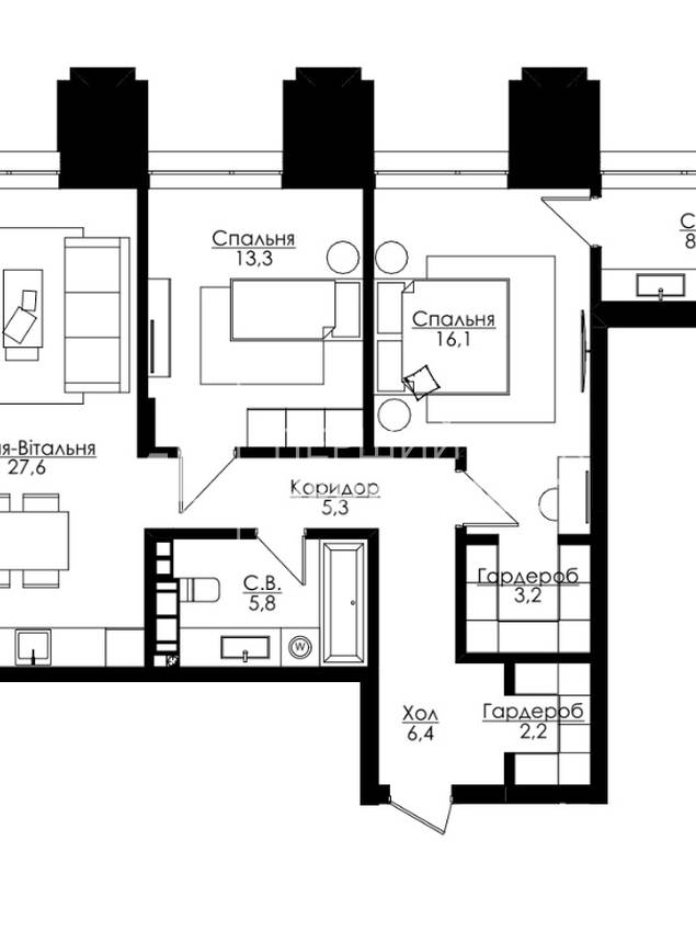 | Висота стелі, м. | 3.00 | ||