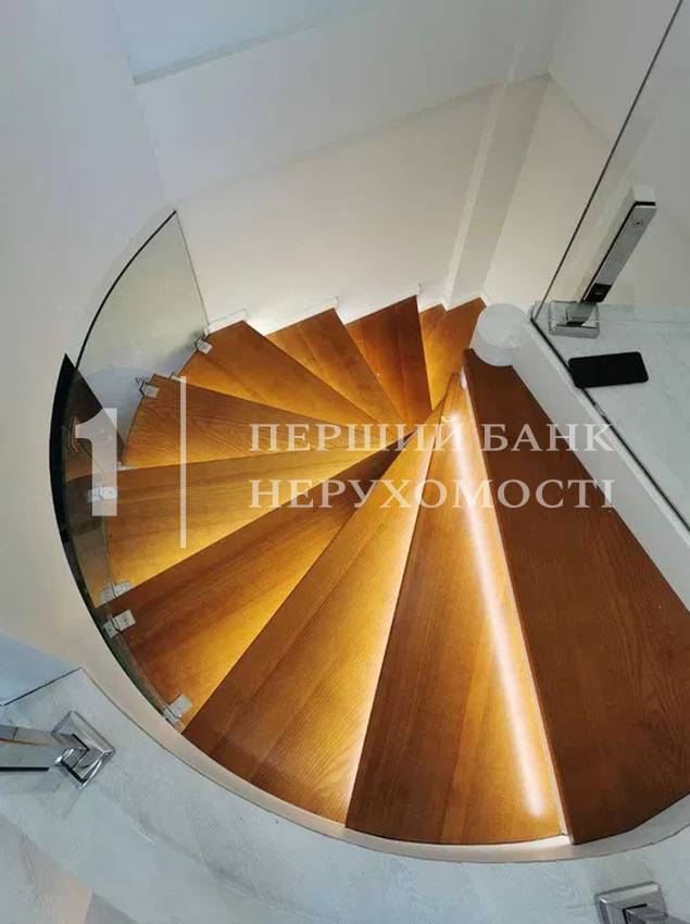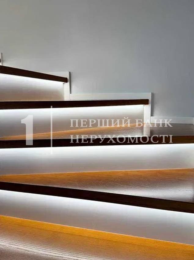 Авторські сходи з палубної сосни з підсвічуванням та обрамленням з розжареного скла додають інтер'єру стилю та легкості.