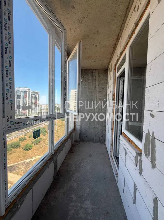Площа — 42,4 м², 13 поверх 17-поверхового будинку. Є лоджія. Стан – від будівельників, можливий невеликий торг.