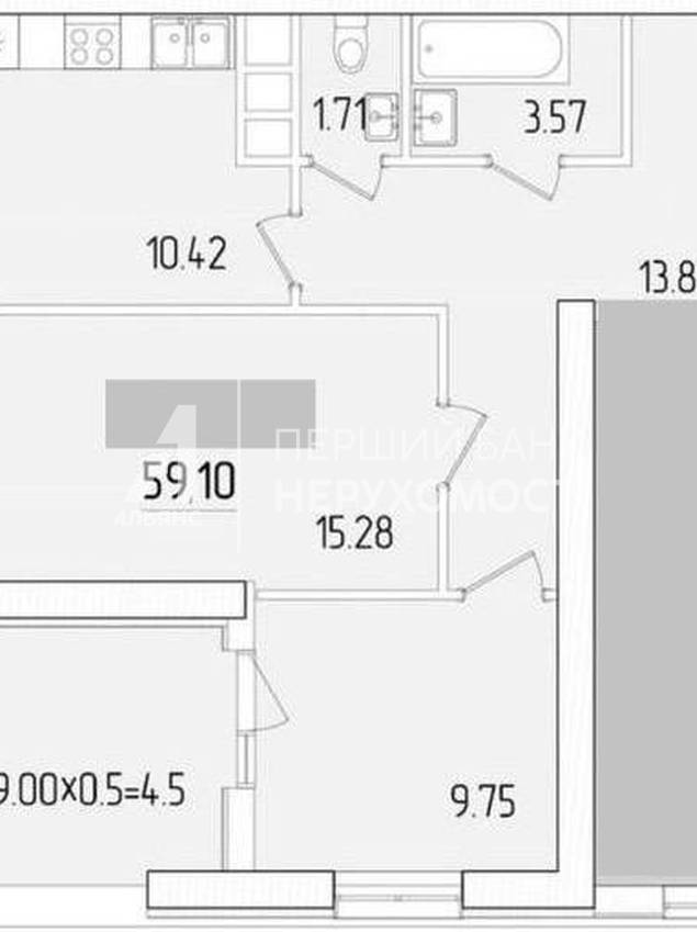 Площа – 59,1 м²