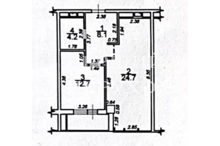 | Жила/Кухня, кв.м. | 12.70/24.70 | ||