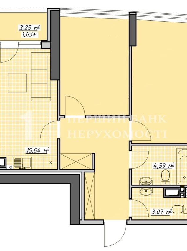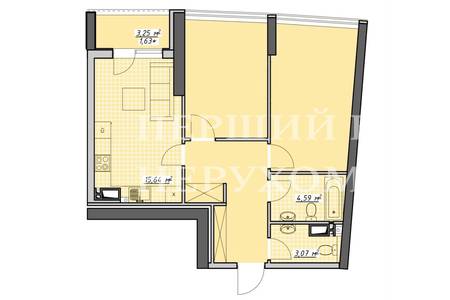 Велика кухня-студія 16 м2 із виходом на балкон плюс дві спальні!