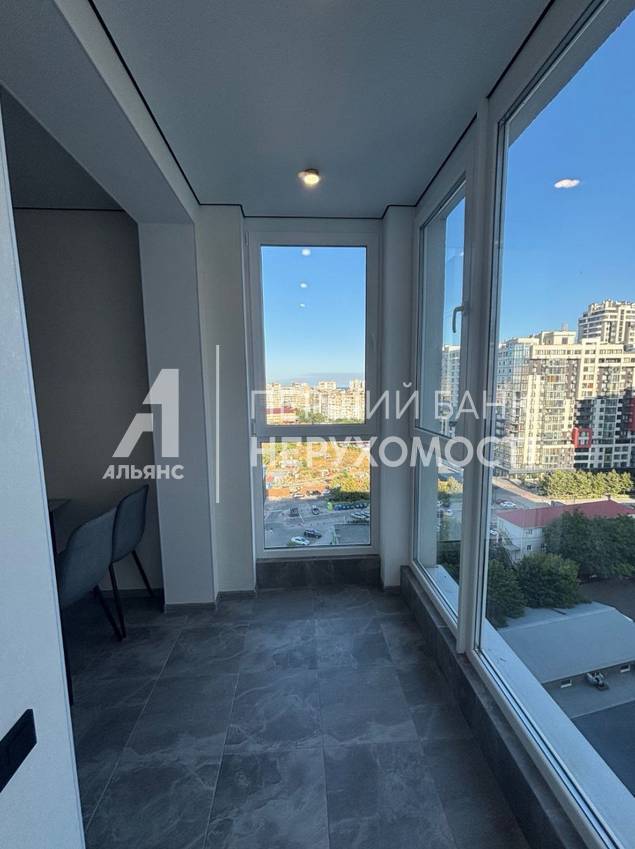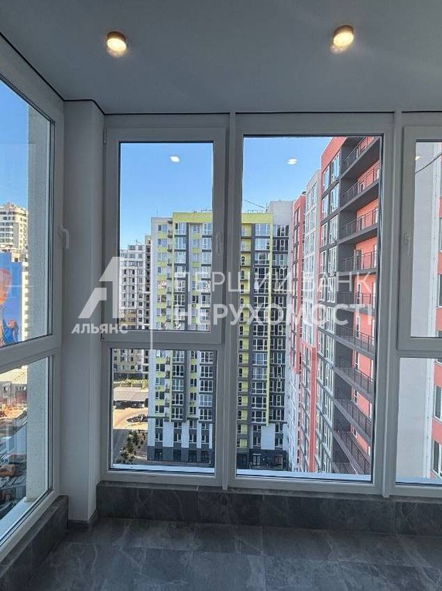 Середній поверх, панорамні вікна, лоджія з видом на місто та у двір.