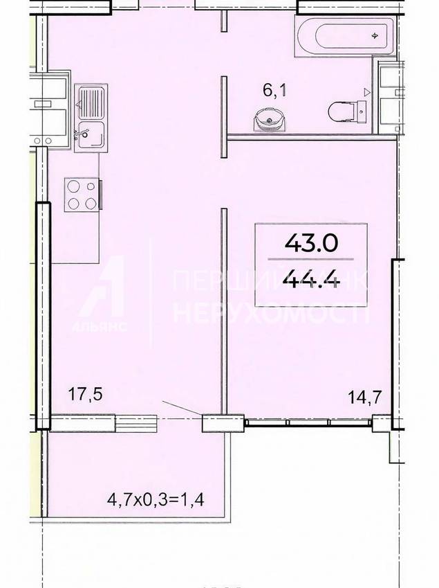 | Загальна, кв.м. | 44.40 | ||