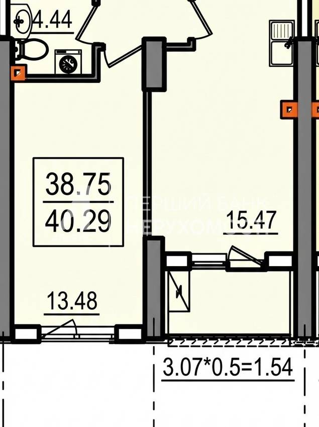 | Жила/Кухня, кв.м. | 13.48/15.47 | ||