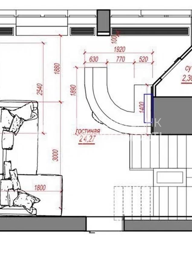 | Висота стелі, м. | 3.00 | ||