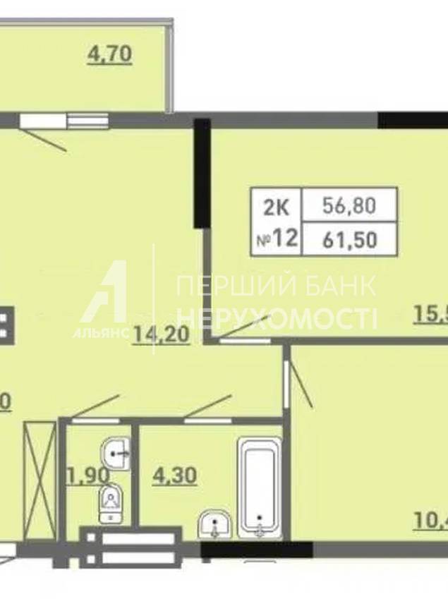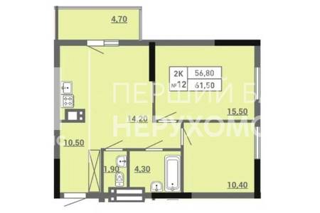 | Загальна, кв.м. | 61.50 | ||