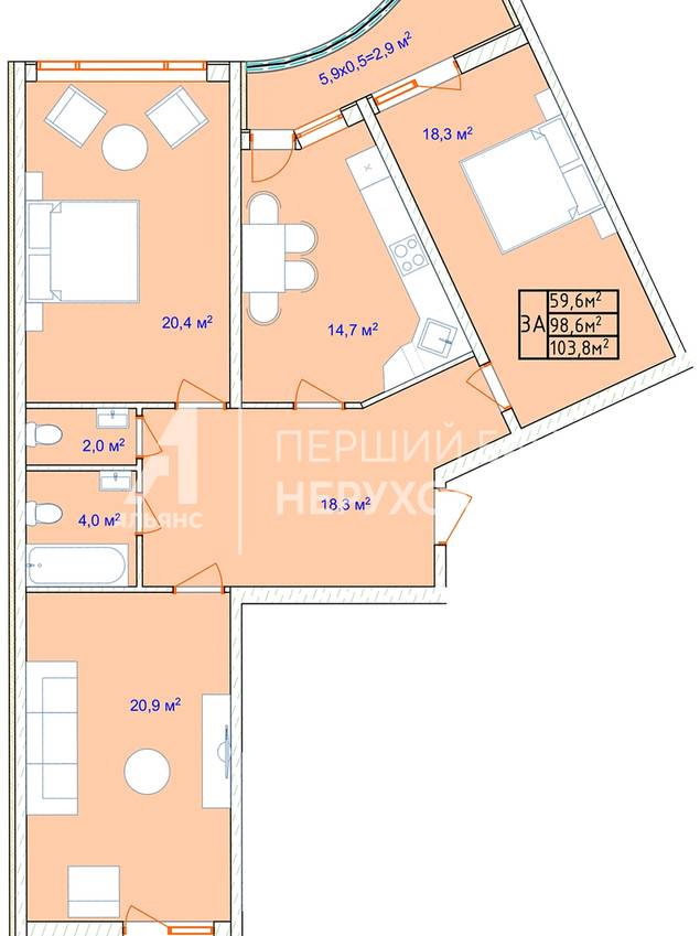 | Загальна, кв.м. | 79.80 | ||