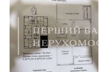 Вид на море і приватний сектор. У квартирі 3 кімнати, кухня, передпокій, два санвузли та вбиральня, балкон.