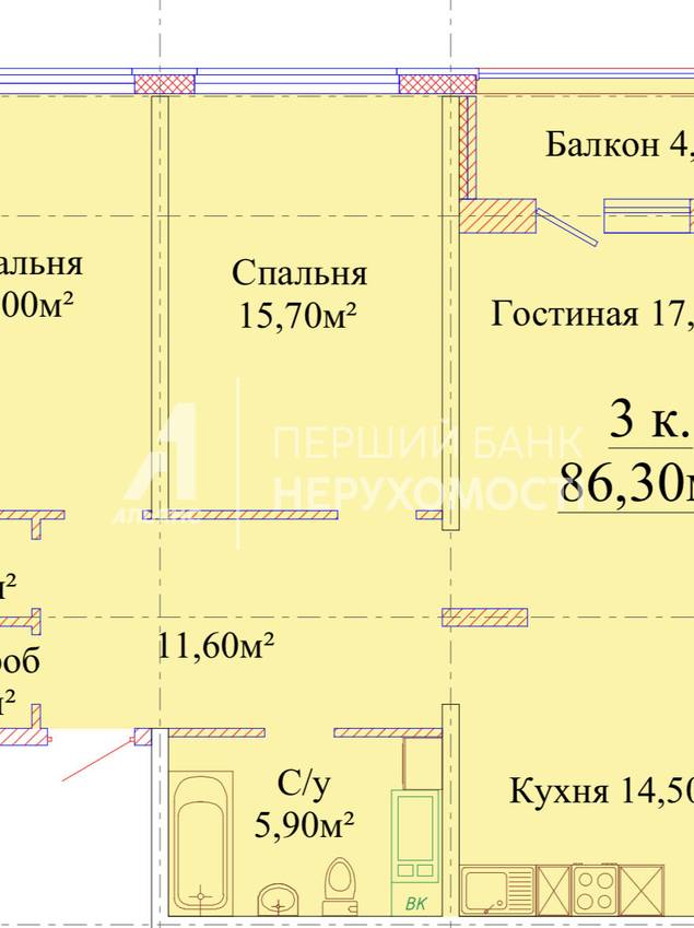 | Загальна, кв.м. | 86.30 | ||