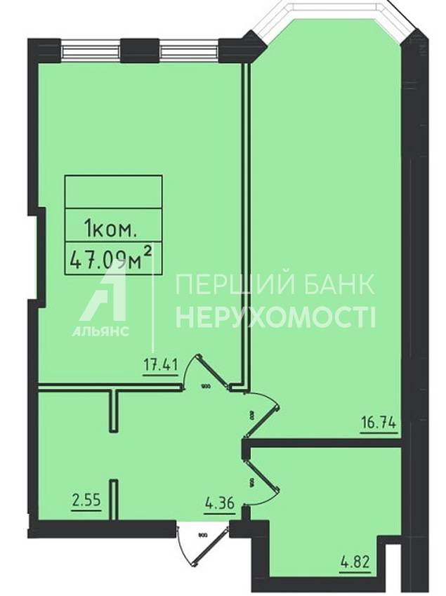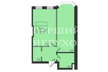 Загальна площа 47м2, кухня 15м2, кімната 17м2, вбиральня, з/в. АГВ, Котел встановлюється.