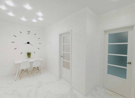 Высота потолков в квартире – 2,75м. В каждой комнате оштукатурены стены и произведены работы по стяжке пола цементно-песчаной смесью. Такой подход сокращает время на черновые работы, что выгодно всем, кто хочет скорее обустроить свое жилище.