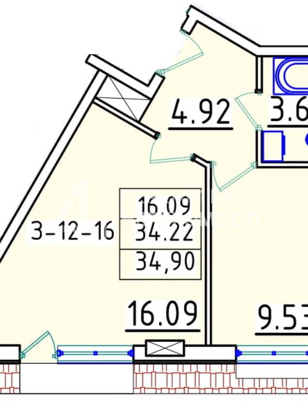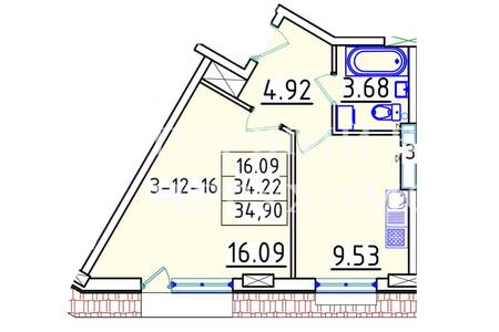 | Общая, кв.м. | 34.90 | ||