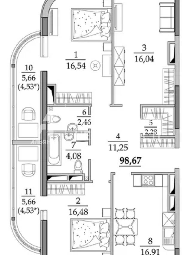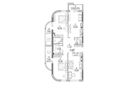 Площадь - 107 м.кв., 21 этаж/ 25.
