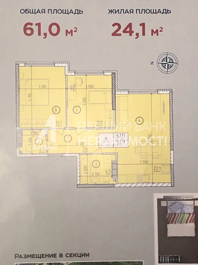 | Общая, кв.м. | 61.00 | ||