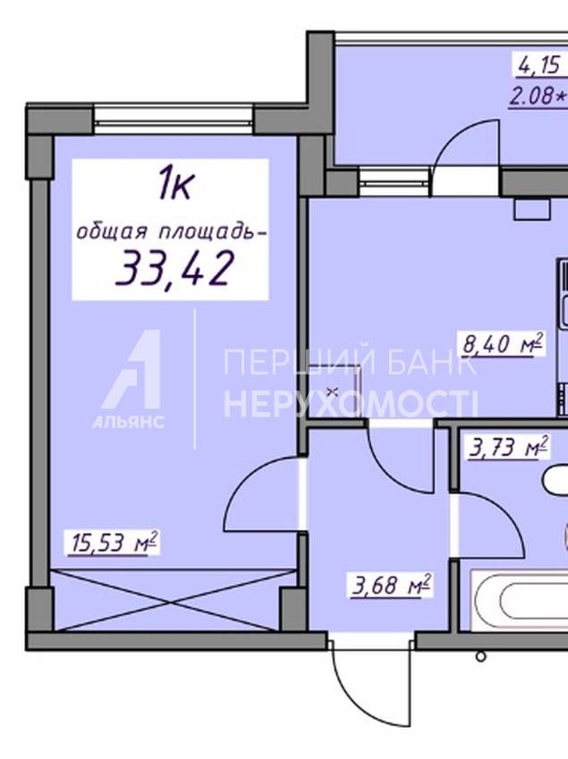 | Общая, кв.м. | 33.40 | ||