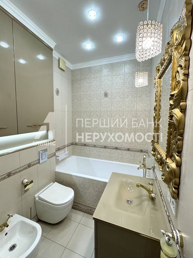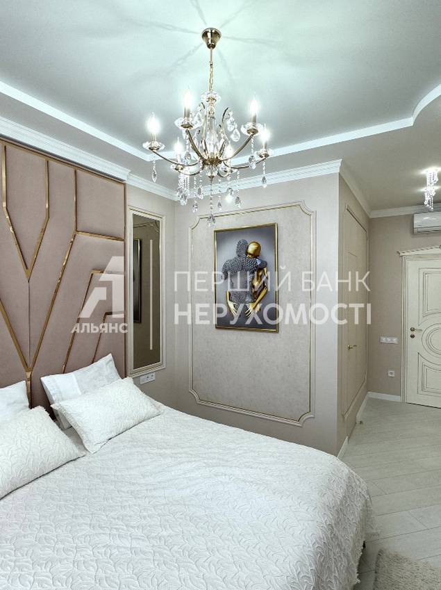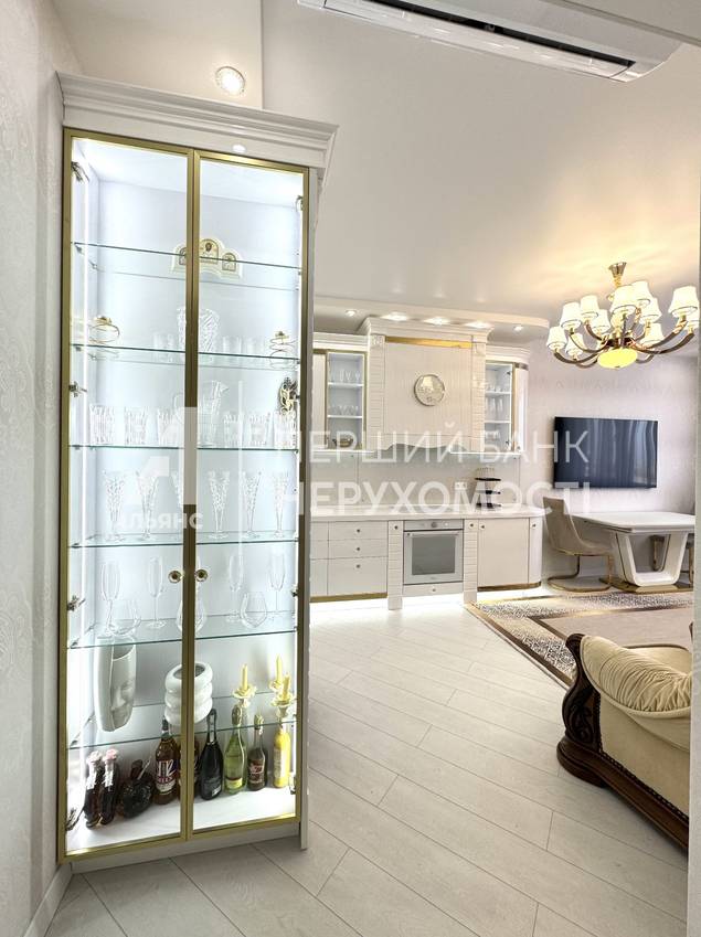 В квартире две спальни, два санузла (ванная и душевая), кухня объединенная с гостинной, гардеробная , балкон утеплен и оборудован под прачечную (стиральная, сушильная машина BOSCH), просторный холл с зеркальным панно.