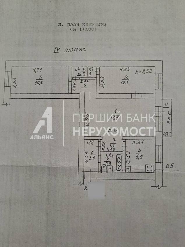У продажу 3-кімнатна квартира на 4 поверсі із 5.