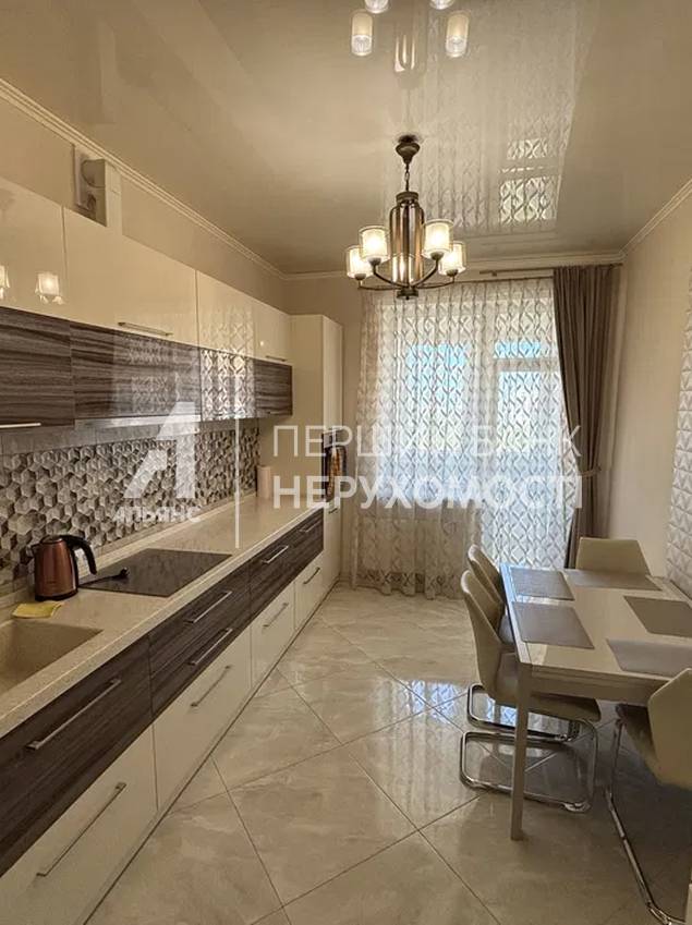 Просторную кухню с выходом на большую застекленную лоджию.
