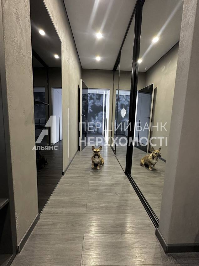 Зеркало полумесяц, зонирующая декоративная стенка, но не забирающая пространство и большой зеркальный шкаф 3 м на 3 м Есть арендованная кладовая в год площадью 1 кв. м.