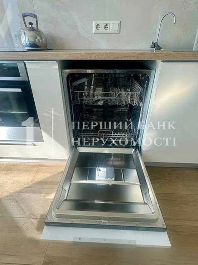 В кухне установлены: встроенная кухня с варочной поверхностью, духовкой, посудомойкой 60 см, холодильник, кондиционер, телевизор.