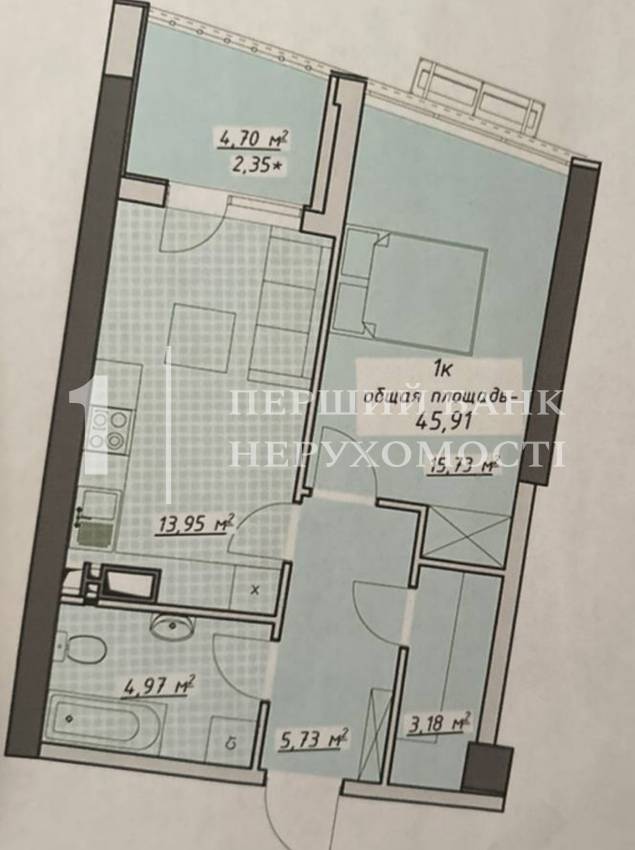 | Общая, кв.м. | 45.91 | ||
