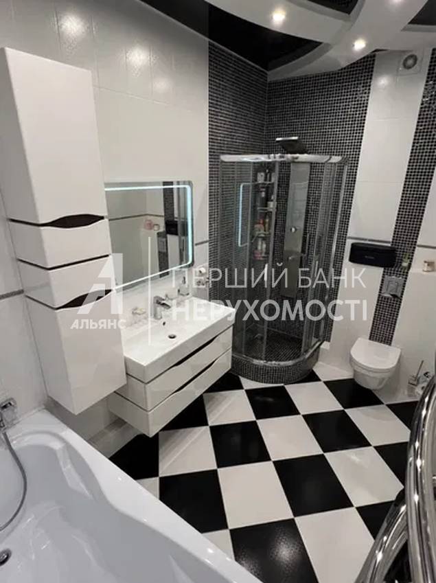 Полноценная ванная комната с большой ванной, душевой кабиной с мозаикой, сантехникой Ravak, Grohe и Villeroy & Boch.