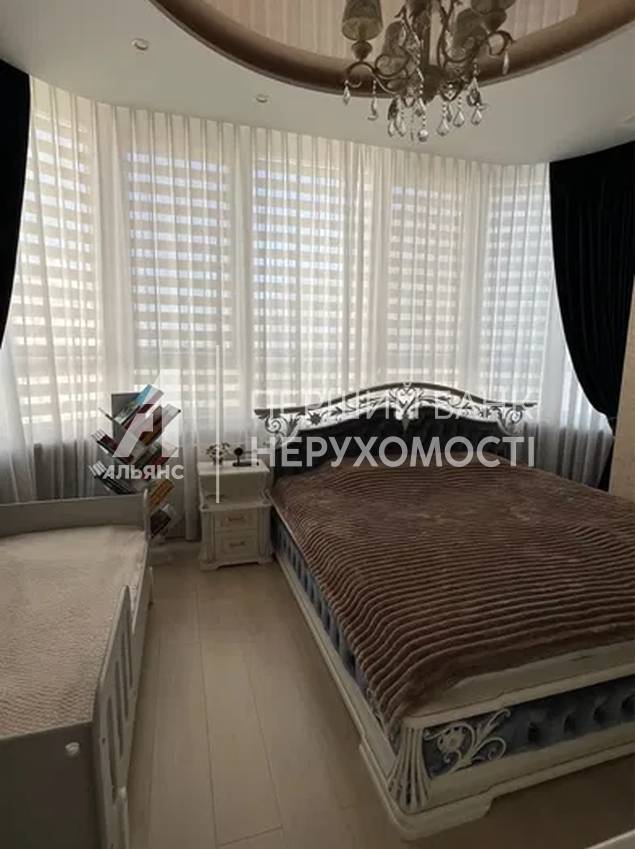 Отдельная спальня в спокойных благородных тонах с мебелью из белого дуба на заказ, панорамными окнами с видом на море, жалюзи день/ночь и дизайнерскими шторами из натурального бархата.