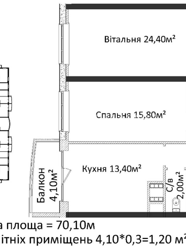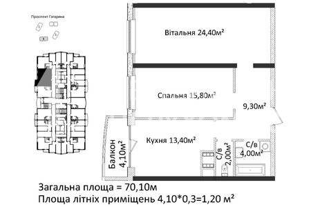 | Общая, кв.м. | 70.00 | ||