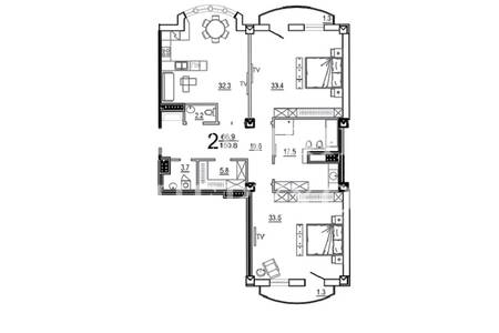 Квартира состояние от строителей. Три просторные раздельные комнаты, два санузла.