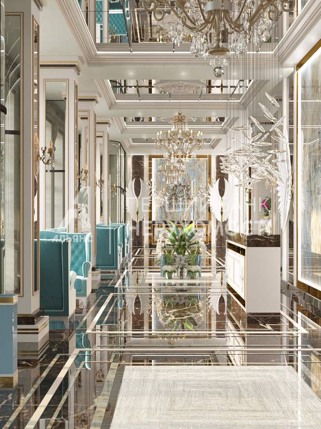 Роскошный холл и современная архитектура комплекса и никакой коммерции на первых этажах;